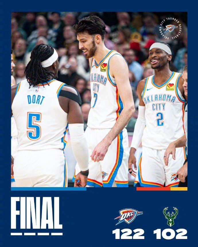 世界杯直播-雷霆20分大胜雄鹿,稳居西部第一!SGA狂轰40+7+11,字母19+14+7|三分球|亚历山大|谢伊·吉尔杰斯-亚历山大|谢伊·吉尔吉斯-亚历山大|扬尼斯-阿德托昆博_新浪体育_新浪新闻